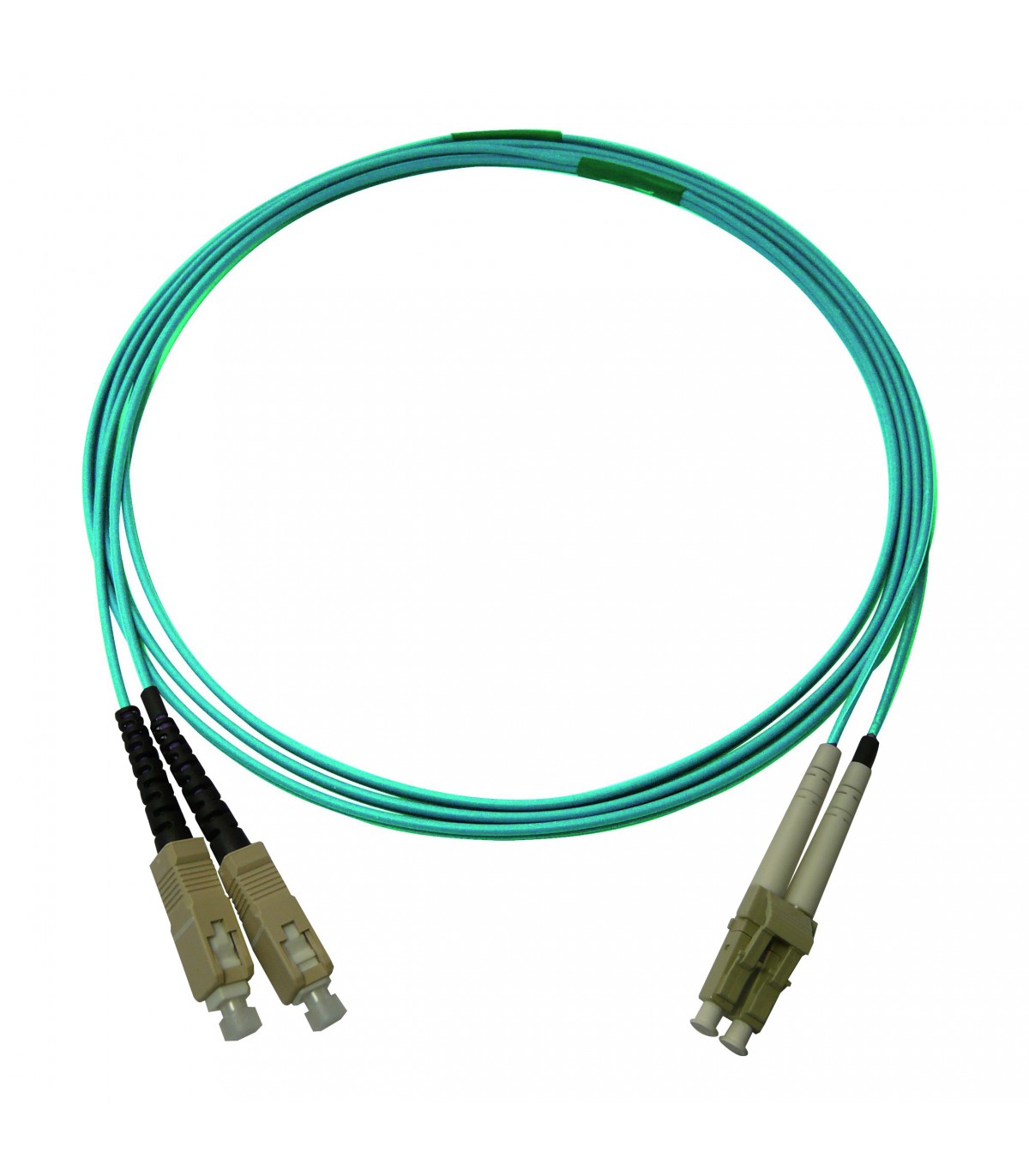 Fibre optique Duplex SC/LC OM4 Multimode 50/125 LSOH turquoise 15 mètres (Fabrication Spécifique)